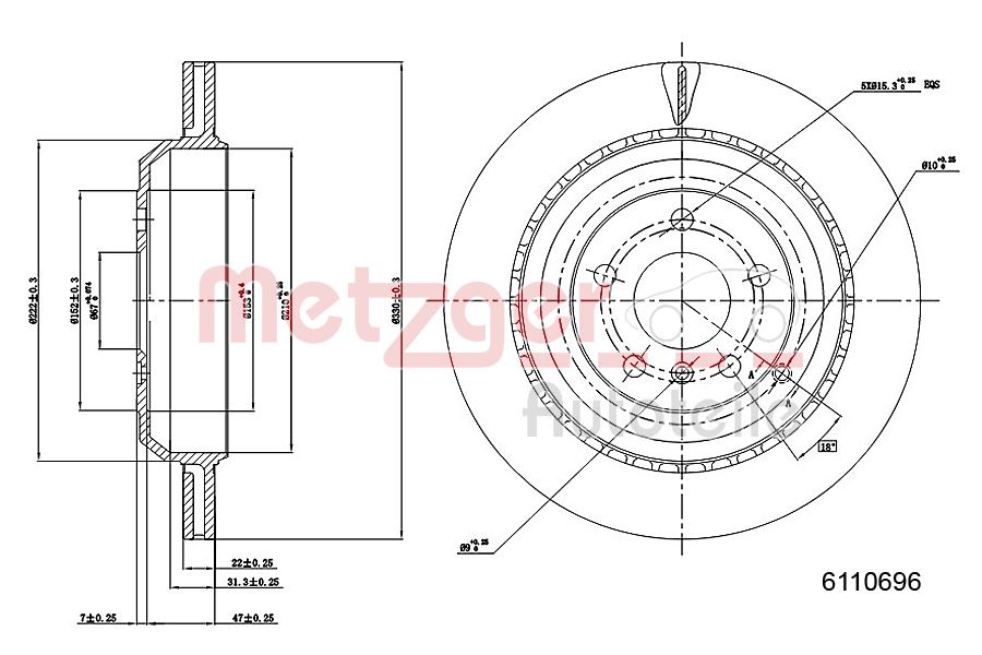 METZGER AUTOTEILE / tarcza hamulcowa Oś tylna / 6110696