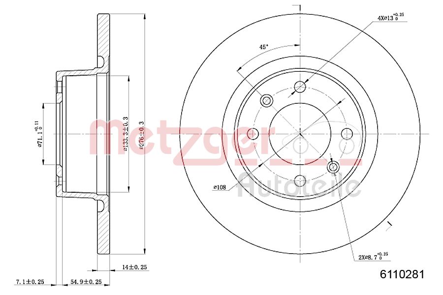 METZGER AUTOTEILE / tarcza hamulcowa Oś tylna / 6110281