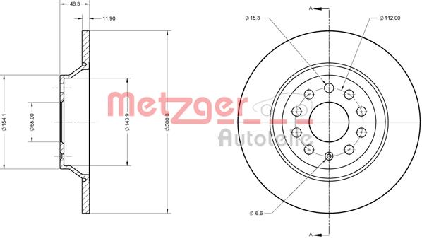 METZGER AUTOTEILE / tarcza hamulcowa Oś tylna / 6110747