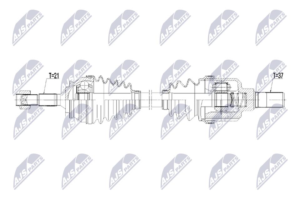 NTY / półoś napędowa Oś przednia, z lewej / NPW-PE-133