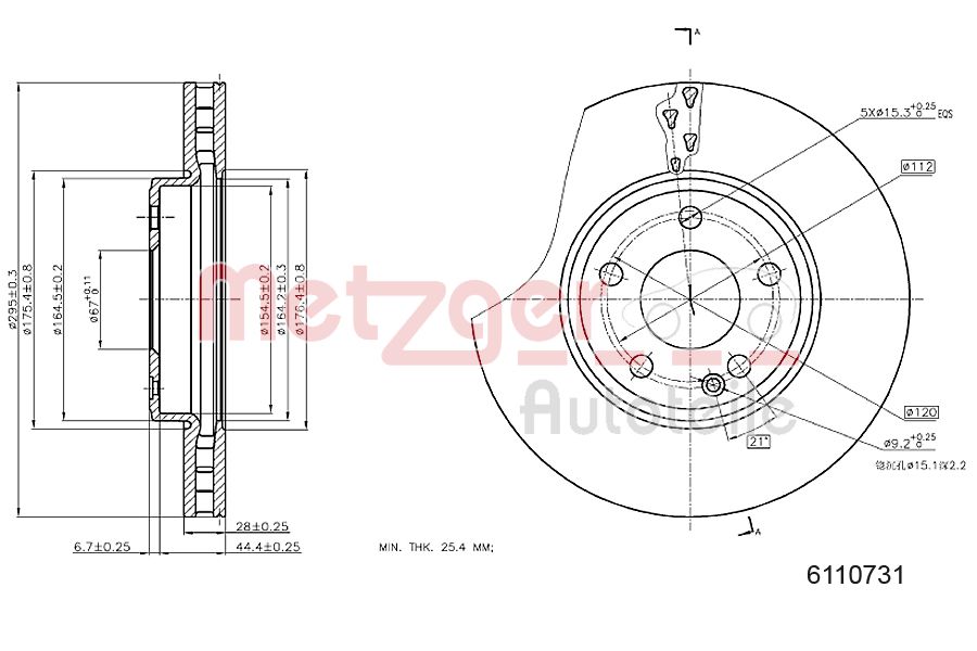 METZGER AUTOTEILE / tarcza hamulcowa Oś przednia, z lewej, Oś przednia, z prawej / 6110731