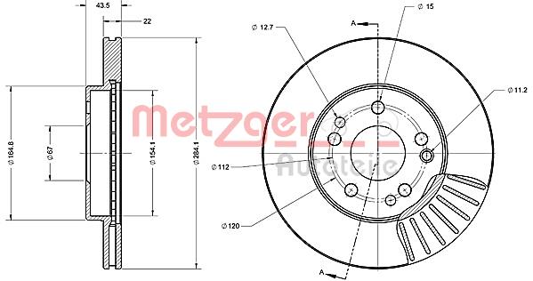 METZGER AUTOTEILE / tarcza hamulcowa Oś przednia, z lewej, Oś przednia, z prawej / 6110135