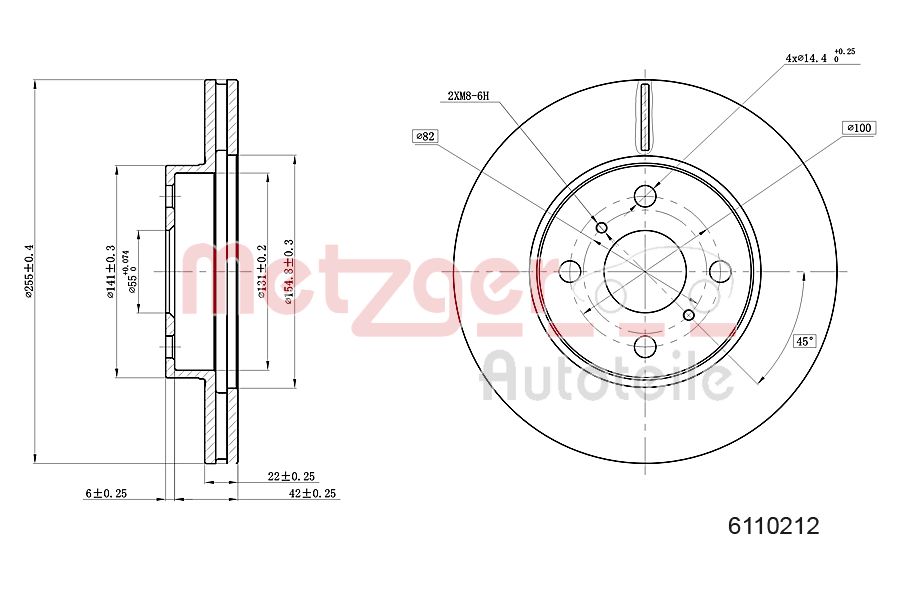METZGER AUTOTEILE / tarcza hamulcowa Oś przednia, z lewej, Oś przednia, z prawej / 6110212